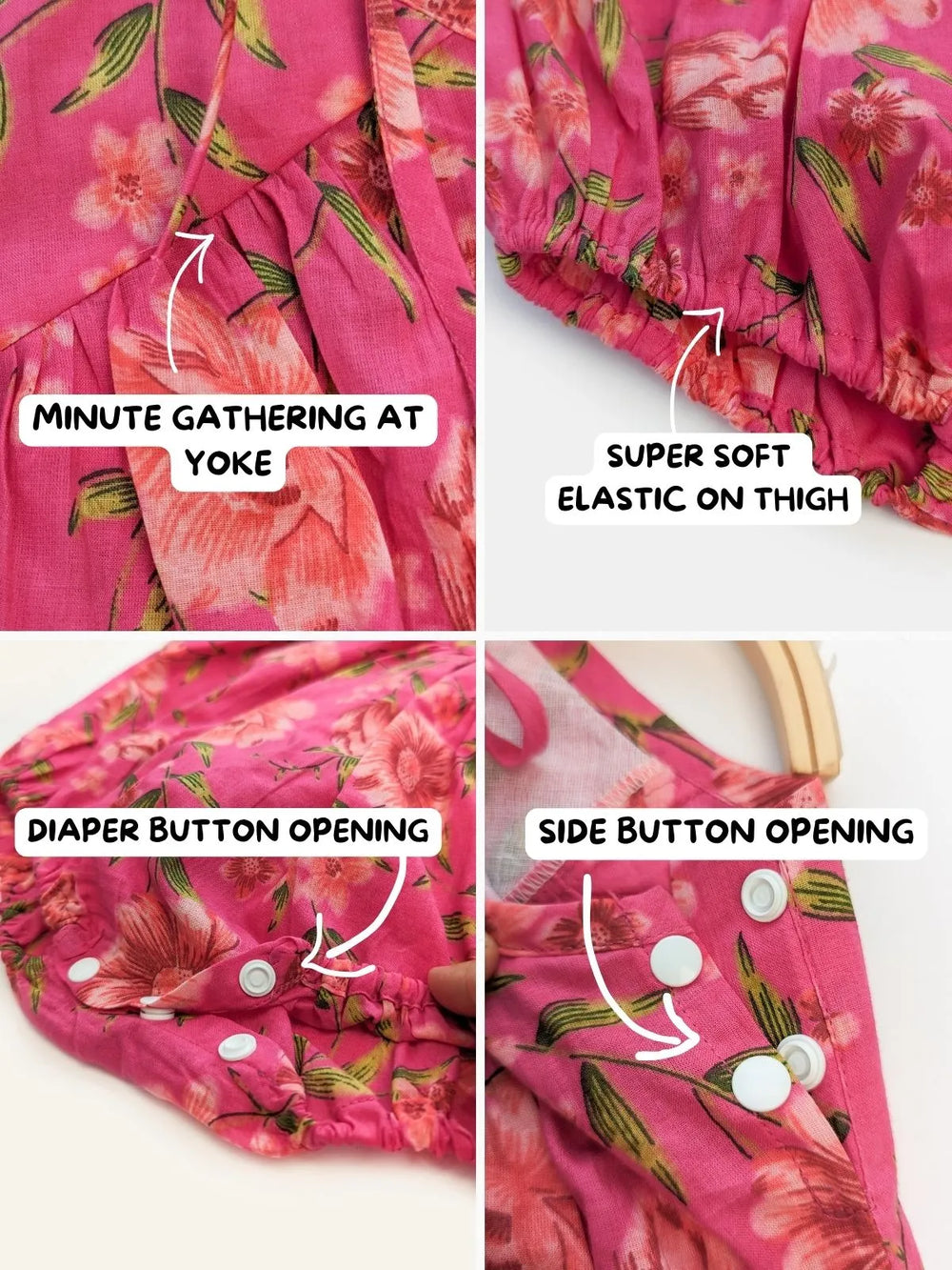 Baby Girl Pure Cotton Mini Yoke Floral Romper - pink
