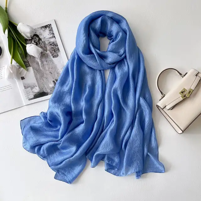 Cyan Blue Silk linen stole